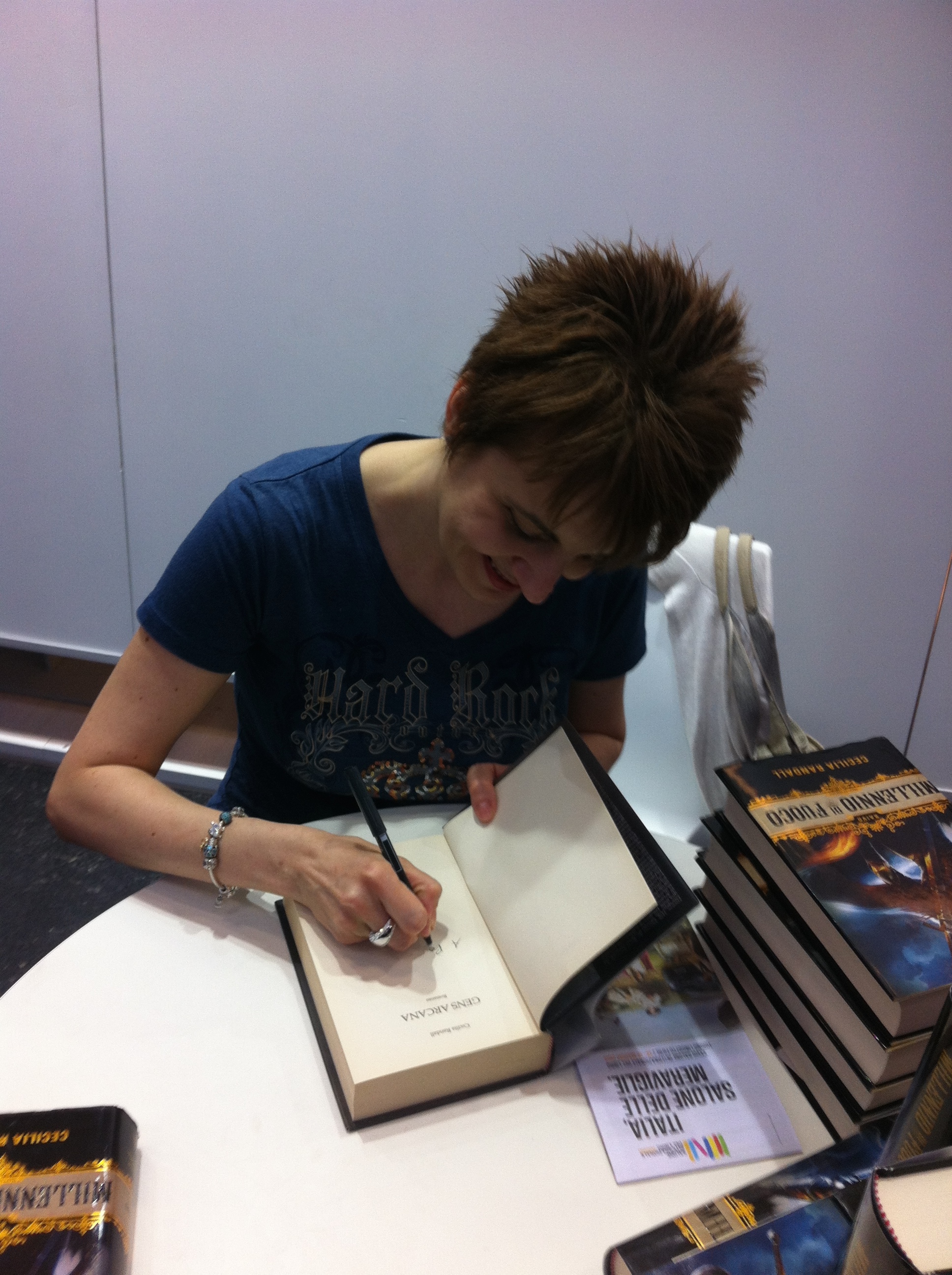 IMG_2440 Published 25 Maggio 2015 at 1936 × 2592 in Il “mio” Salone Internazionale del Libro di Torino 2015 Cecilia Randall che, con mio sommo gongolamento, mi ha scritto meravigliose dediche sulle mie copie di Millennio di fuoco e Gens Arcana